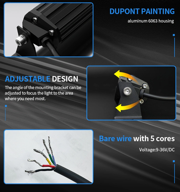 USA-Grade Components: Loaded with reliable Cree/Osram chips, Deutsch waterproof connector, anti-fog breather, and DuPont powder-coated finish—designed to stay pristine for years.